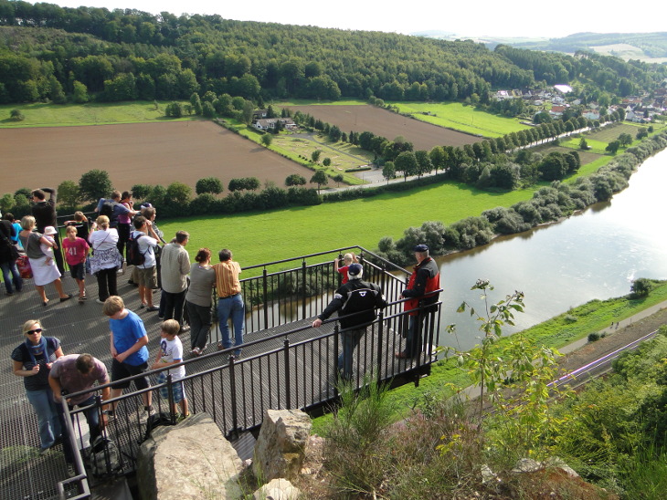 An die Hannoverschen Klippen bei Bad Karlshafen wurde vor einigen Jahren der Weser Skywalk gehängt. Von hieraus erstreckt sich der Blick über Hessen, Niedersachsen und NRW. Sie können mit dem Auto direkt anfahren, oder mit der Fähre über die Weser setzen und die Klippen zu Fuß erklimmen.